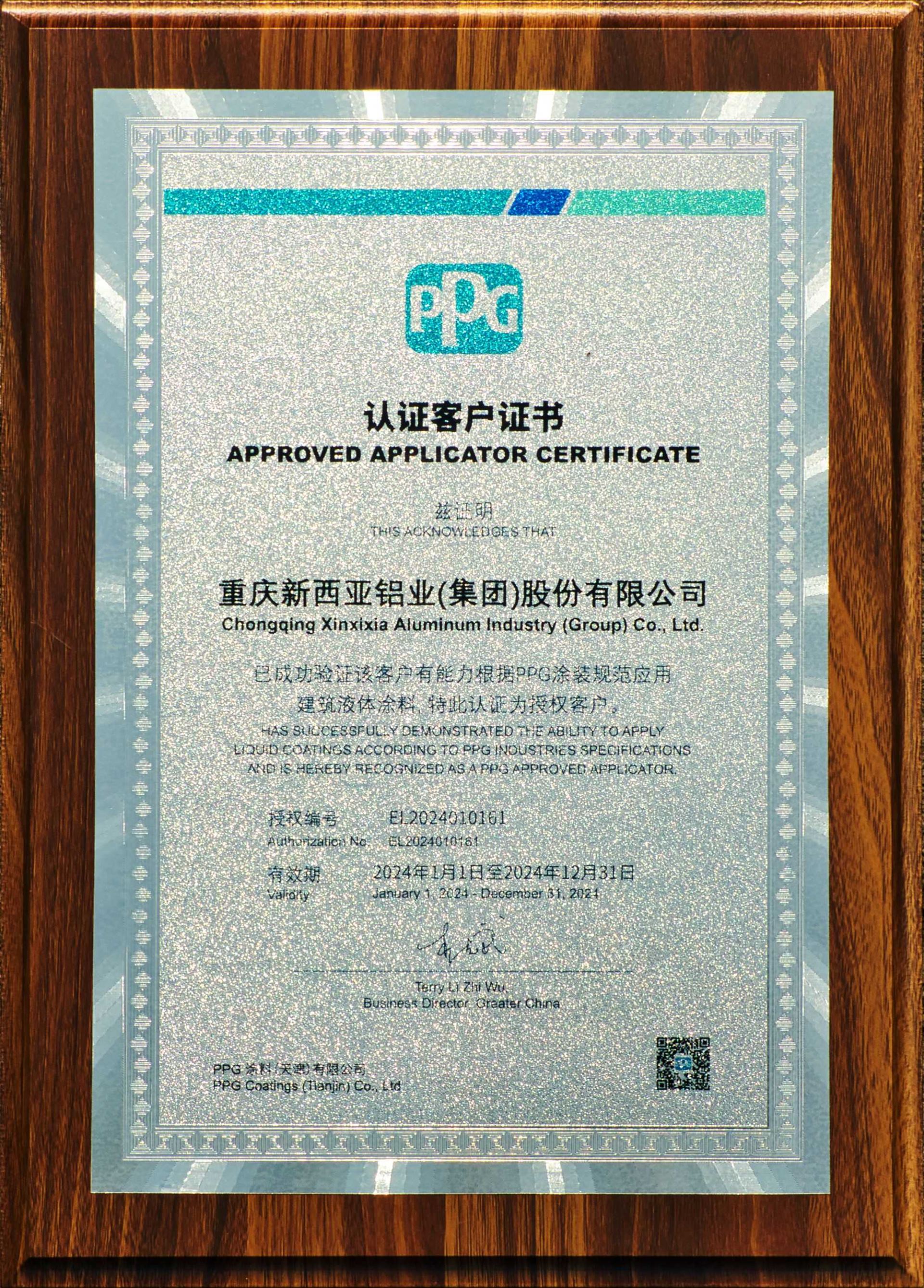PPG涂料(天津)有限公司建筑液体涂料认证客户证书