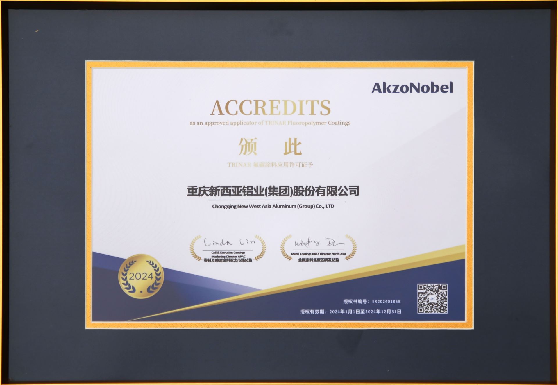 阿克苏诺贝尔TRINAR氟碳涂料应用许可证