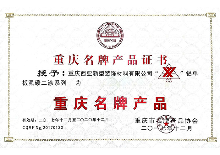 重庆名牌产品证书
