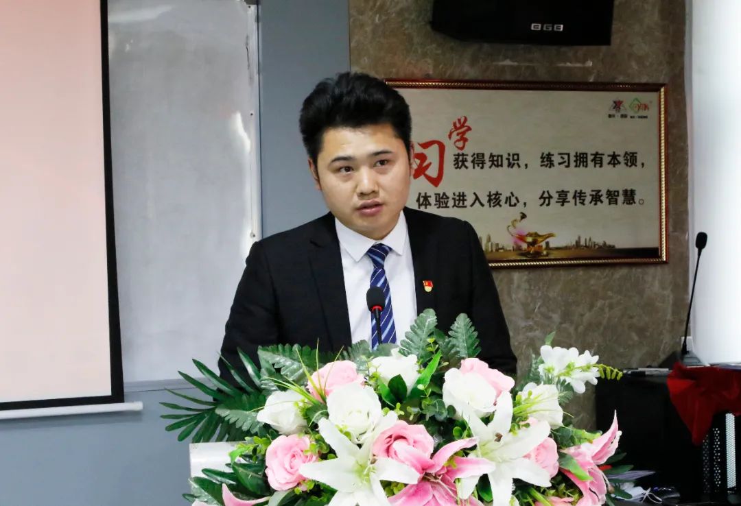 集团公司总经理助理兼营销总监的郭泽武、铝装饰事业部钣金车间副经理傅熊,作为新聘管理干部代表在会上作了任职表态发言。