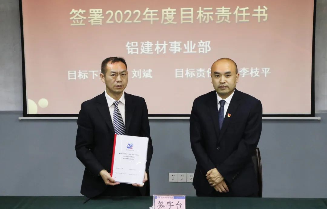 集团公司董事长、总经理刘斌代表集团公司分别与各事业部主要负责人签订了《2022年经营目标责任书》。目标责任书将各事业部工作的责任目标、责任内容、考核奖励等类目进行了具体规定,充分压实各级责任,使得各事业部工作更加具体化、细致化、责任化,为各级管理者能更好地完成公司规定的各项经济指标起到了积极的促进作用。