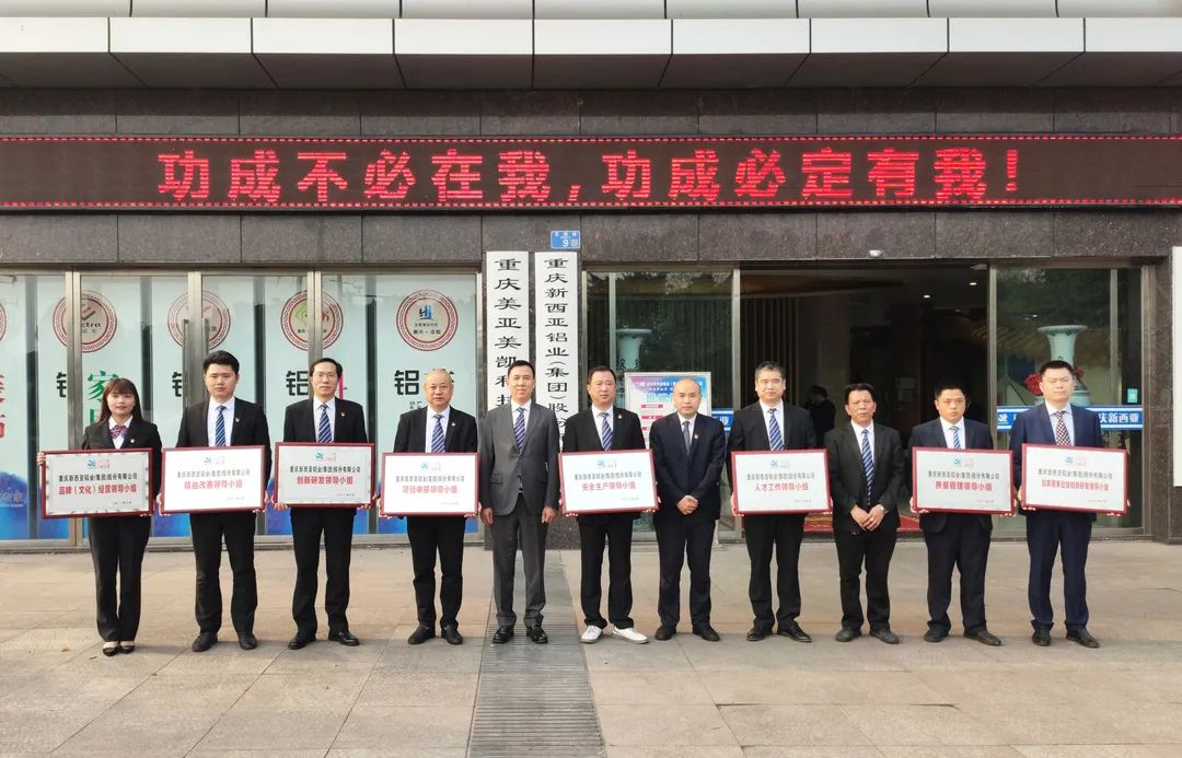 铝科技事业部总经理傅明华宣布了《2022年集团公司八大领导小组分工的决定》。集团公司董事长刘斌分别向八大工作小组进行了集体授牌。刘董殷切希望八大领导小组组长带领全体成员,全方位把专项工作做细做深做透,全面提升公司专项管理水平,为公司三五规划建功立业。