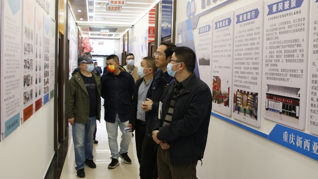 在集团公司常务副总周雄,铝科技事业部总经理、集团创新研发领导小组组长傅明华,铝家居事业部总经理王凯,集团公司营销总监郭泽武的陪同下,刘涛副院长及各专业带头人先后参观了铝装饰展厅、依莱卡全屋全铝智能(智慧)展厅,重点对全铝家居生产工艺、生产设备、产品基材进行了深入了解,对新西亚铝深加工产业链延伸的不同方向和应用进行了广泛调研。