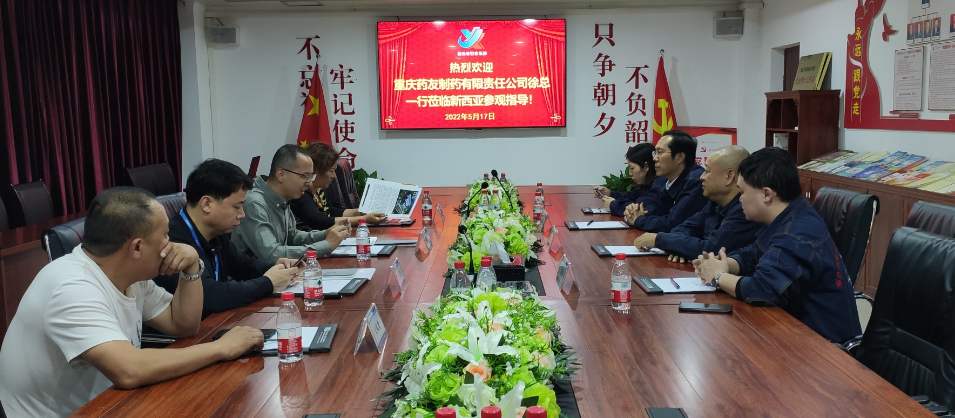 5月17日下午,重庆药友制药有限责任公司(以下简称“药友公司”)副总裁徐小平一行4人莅临suncitygroup太阳官方网站集团参观考察,开展项目合作交流座谈。