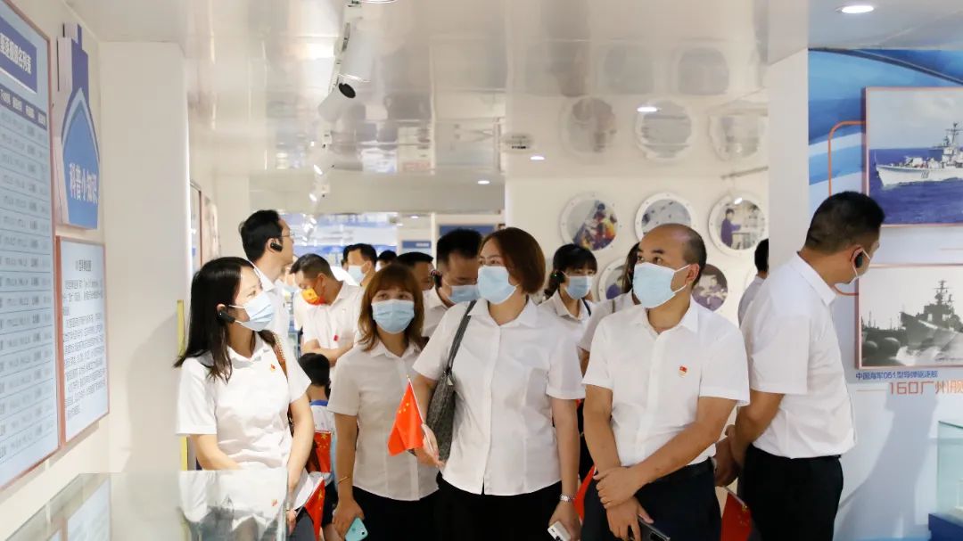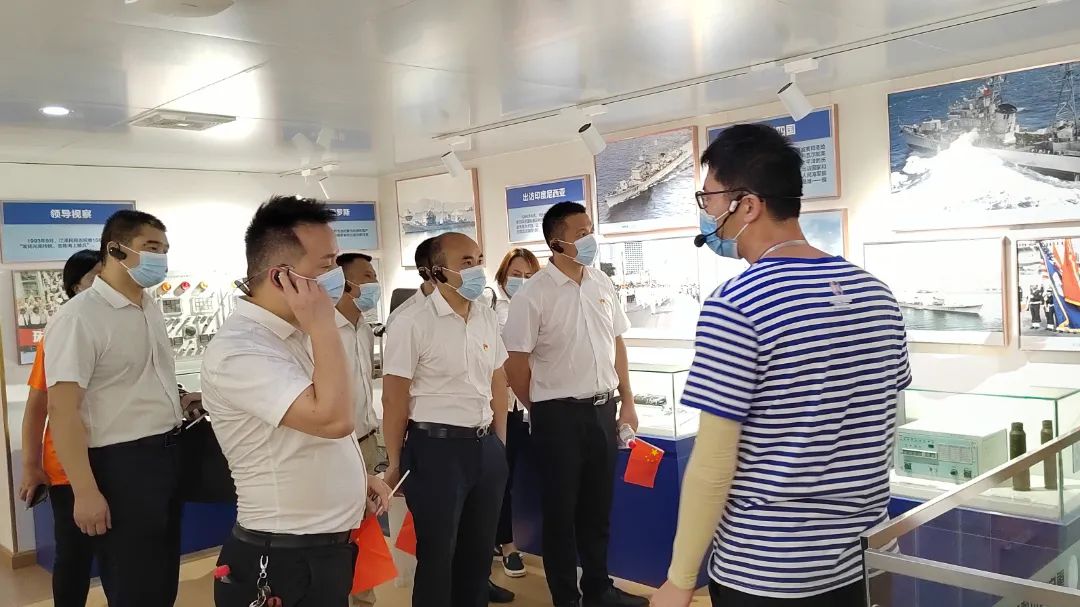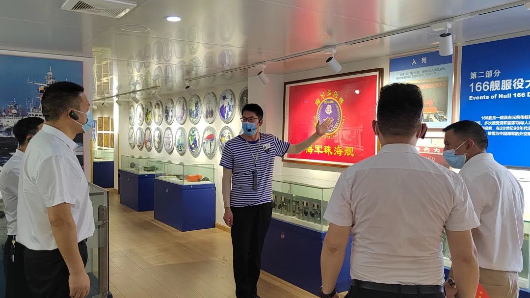 最后,全体党员登上了原中国人民解放军海军“166”舰参观,共同追溯中国海军成长壮大的历史。在 “166”舰上,通过大量的文字、图片及多媒体等多种形式,回顾“166”舰自建造之初直至光荣退役的历史。登上舰艇,首先映入眼帘的是甲板中部的舰对舰鹰击导弹,反潜鱼雷发射装置,还有加装的电子显示屏上播放的166舰的历史资料和发射影像资料等。并辅以大量水兵的生活用品、舰上专用器材等实物,让我们重温“166”舰的光辉岁月,感受舰上官兵的精神风貌。了解166舰退役前为祖国做出的贡献,深切感受到中国军人对党、对祖国、对人民的无限忠诚。大家都为之深受震撼,不禁想起昔日它驰骋在大海上威严、雄伟的雄姿。
