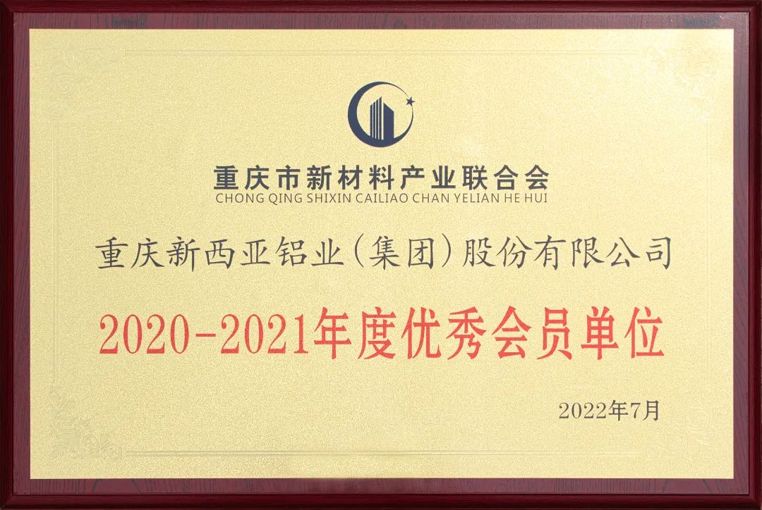 2020-2021年度,suncitygroup太阳官方网站在重庆市新材料产业联合会的关心指导下,不忘初心、牢记使命,认真执行联合会章程,履行副会长、会员义务,积极为新材料产业联合会发展建言献策。经重庆市新材料产业联系会理事会研究,suncitygroup太阳官方网站被评为2020-2021年度优秀会员单位。