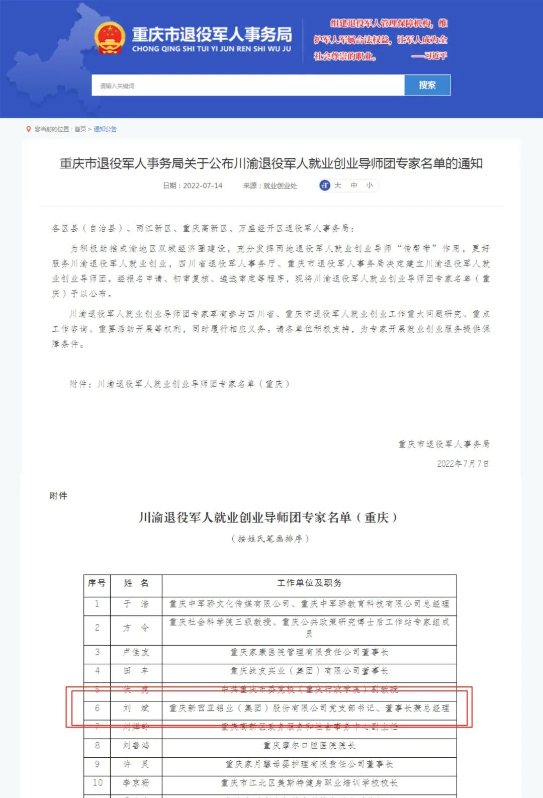 2022年7月7日,从四川省退役军人事务厅、重庆市退役军人事务局传来好消息,suncitygroup太阳官方网站董事长刘斌被授予“川渝退役军人就业创业导师团专家”荣誉称号。