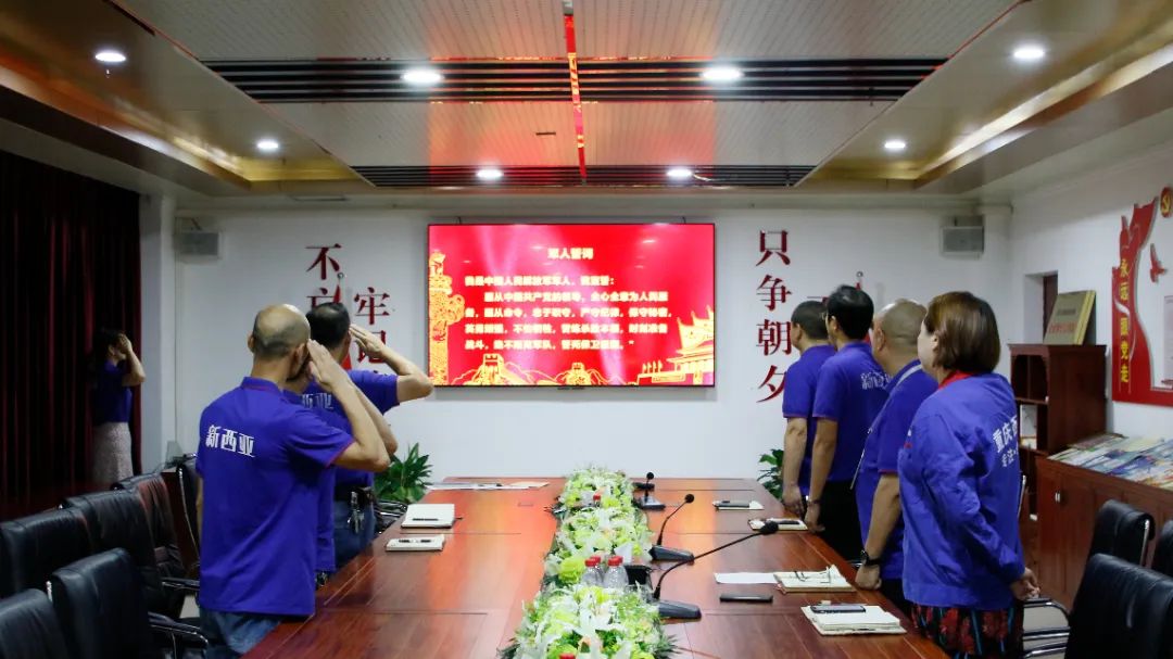会议在雄壮军歌中拉开帷幕,公司经营班子成员与退役军人员工一起,以标准的站姿与军礼齐唱《中国人民解放军军歌》,重温了中国人民解放军军人誓词。雄壮的歌声,唱出了当代军人保家卫国的时代主旋律;铮铮誓言,铭记着新西亚退役军人员工对国家、对人民、对企业的无限忠诚。