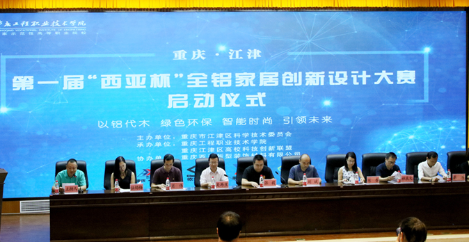 江津区第一届“西亚杯”全铝家居创新设计大赛于6月14日在重庆工程职业技术学院正式启动。江津区科委副主任张毅、重庆工程职业技术学院副校长吴再生、重庆西亚铝业(集团)公司董事长刘斌以及江津区高校科技创新联盟的七所高等院校相关领导、师生,共计300余人参加了启动仪式。