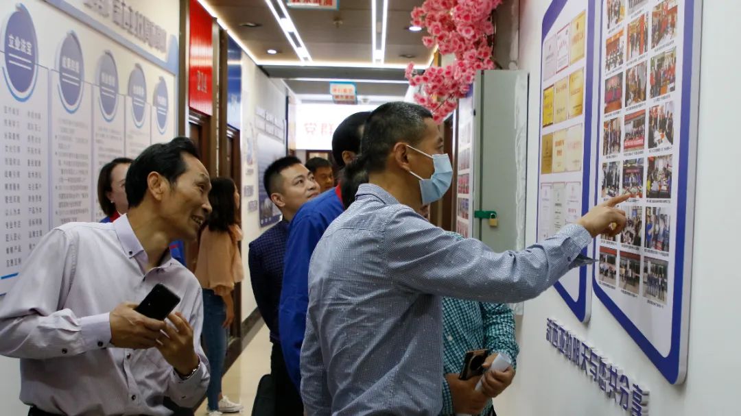 集团公司工会主席、副总经理傅明华携群团工作人员热情接待,并陪同雷部长一行参观了产品展示厅、二楼文化长廊、党群活动室,重点考察了市场开发部工会小组(职工小家)活动阵地、办公区、职工书屋、卡拉OK室、家属接待区等工会阵地建设情况,认真查阅了市场开发部工会小组建家档案资料。