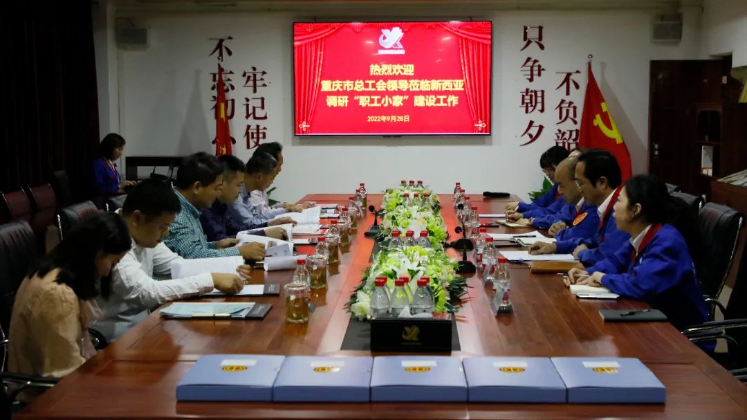 2022年9月28日,重庆市总工会基层组织建设部副部长(挂职)雷念,化医农林水利工会副主席王世炎,国防邮电工会一级调研员温相福,区总工会二级调研员、机关工会主席万凤华一行莅临suncitygroup太阳官方网站集团调研“职工小家”创建工作。