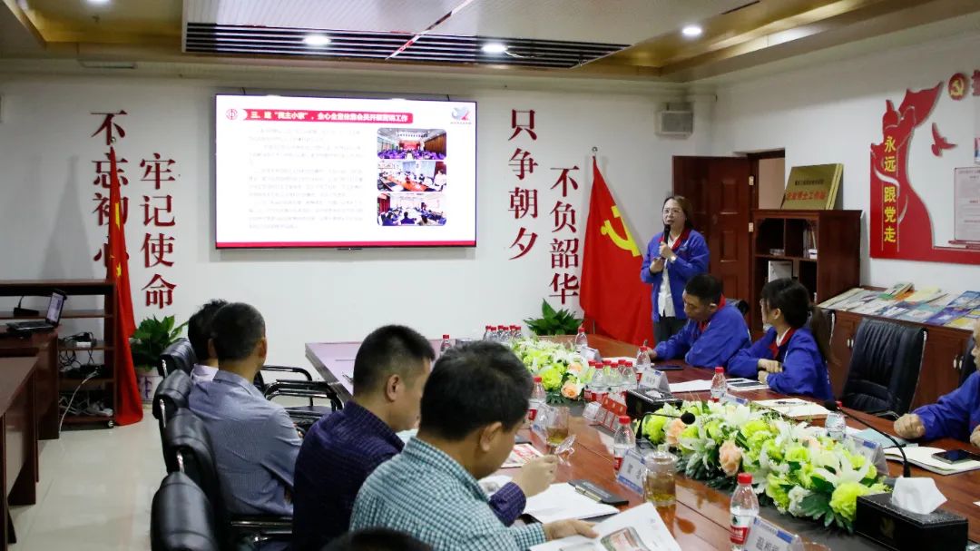 区总工会基层工作部二级主任科员杨勇,区总工会基层工作部工作人员胡婷婷;新西亚铝装饰事业部副总经理、市场开发部经理邱咏菊、战略客户部经理郭清、战略客户部工作人员柯亚,集团公司运营保障部(党群工作部)经理冯远道,团支部书记、总经办主任张丽芳陪同调研座谈。