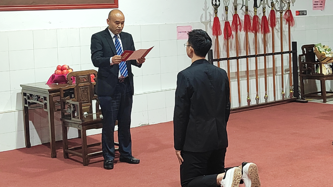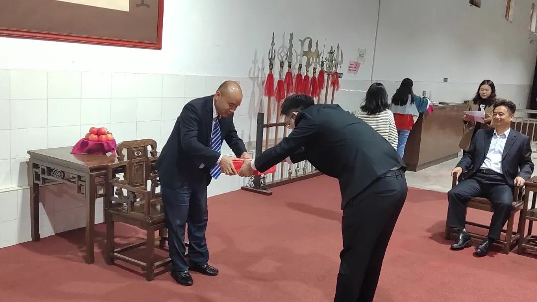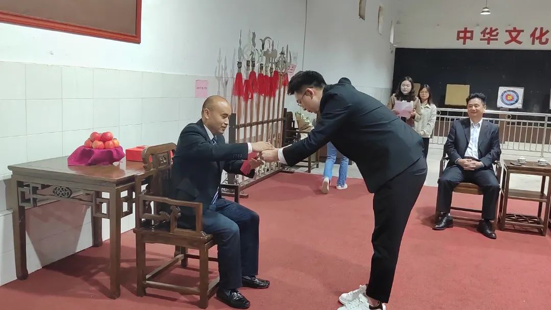 仪式上,师傅刘斌分享了四点自己的人生感悟与爱徒刘洋共勉。刘斌言道:人生之意在于探索未知,创造价值,承担责任,拥抱情感,希望弟子刘洋能认知人活着的意义,走好人生路,成就好人生;在人生的道路上,会遇到各种各样的朋友,他告诫弟子在交友之路上要结交“三观”统一的良友,谙熟交友之道,交人生中能帮助自己成长的好朋友;在创业的道路上,希望弟子能坚守“坚持、责任、创新、发展”的创业之道,要把干成一份事业作为干事创业的远大目标;在立世之道上,要把“诚信、情怀、修养、创新、品格”作为自己的立世之本,守业有方,实现新作为。