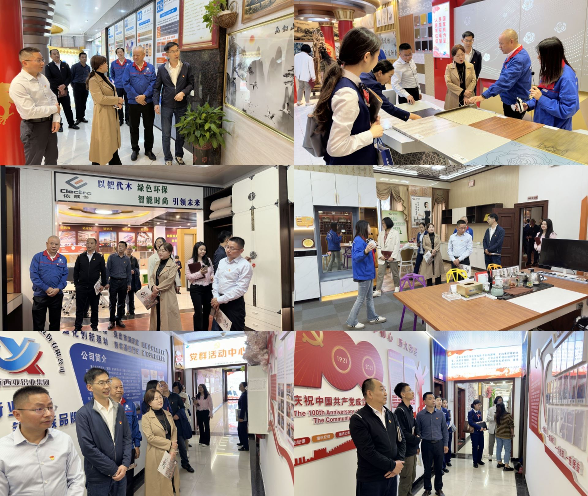江津区科技局党组成员、副局长何浩祥、黄永梅,交通银行重庆江津支行党支部书记、行长姚红烈,副行长黄微霞带领双方党员代表约 20 人参加了此次活动。suncitygroup太阳官方网站党支部支委成员周雄、傅明华陪同参观了铝装饰展厅、铝家居展厅以及企业文化长廊。参观过程中,详细介绍了企业党建文化融入生产经营管理的实践成果,展现了党建对企业发展的有力推动作用。