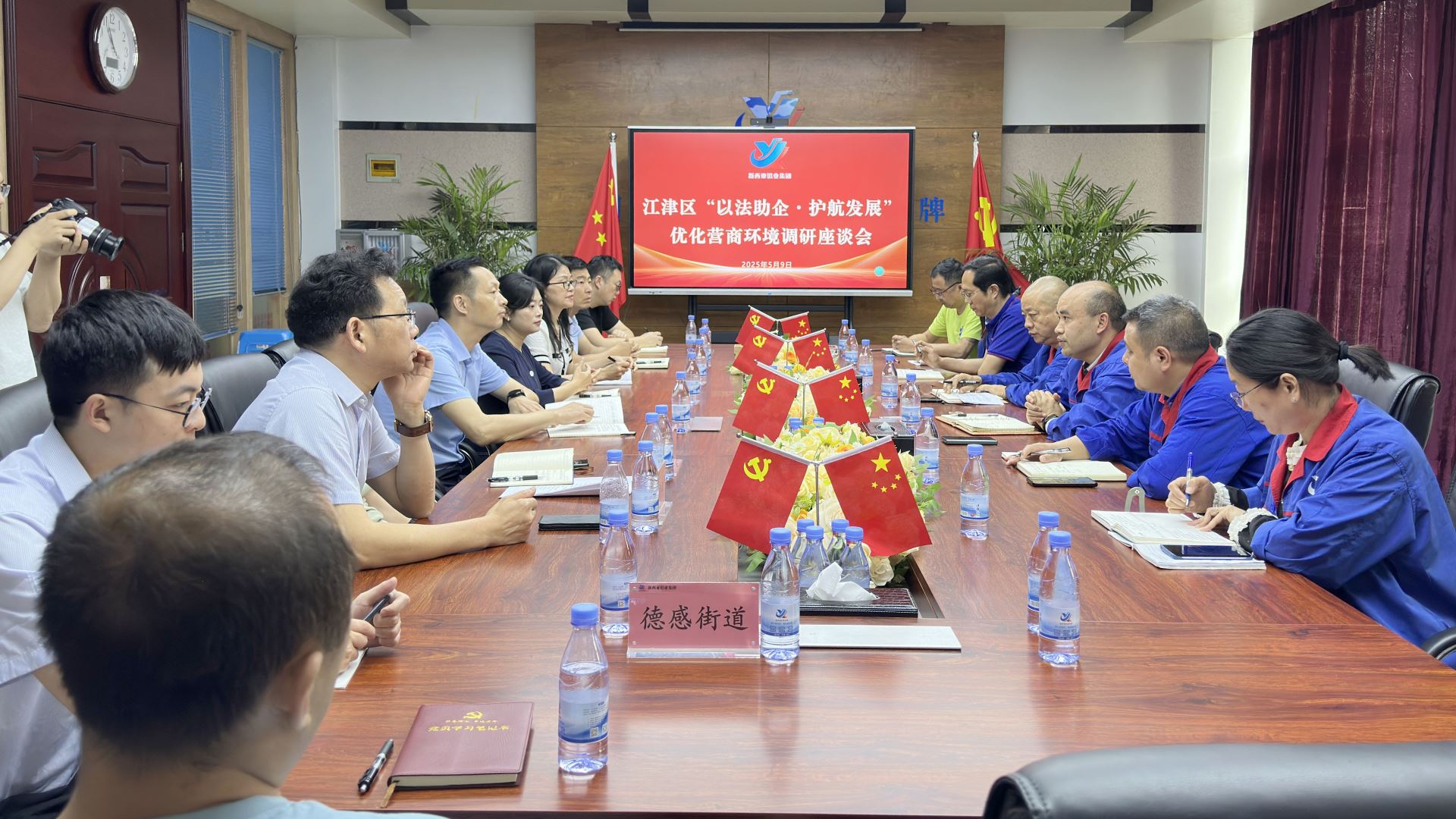 近日,江津区委政法委、区法学会组织区经信委、区司法局等多部门及重庆季霖宇广律师事务所,走进suncitygroup太阳官方网站集团开展“以法助企·护航发展”专项调研,旨在落实全区优化营商环境,赋能企业成长。