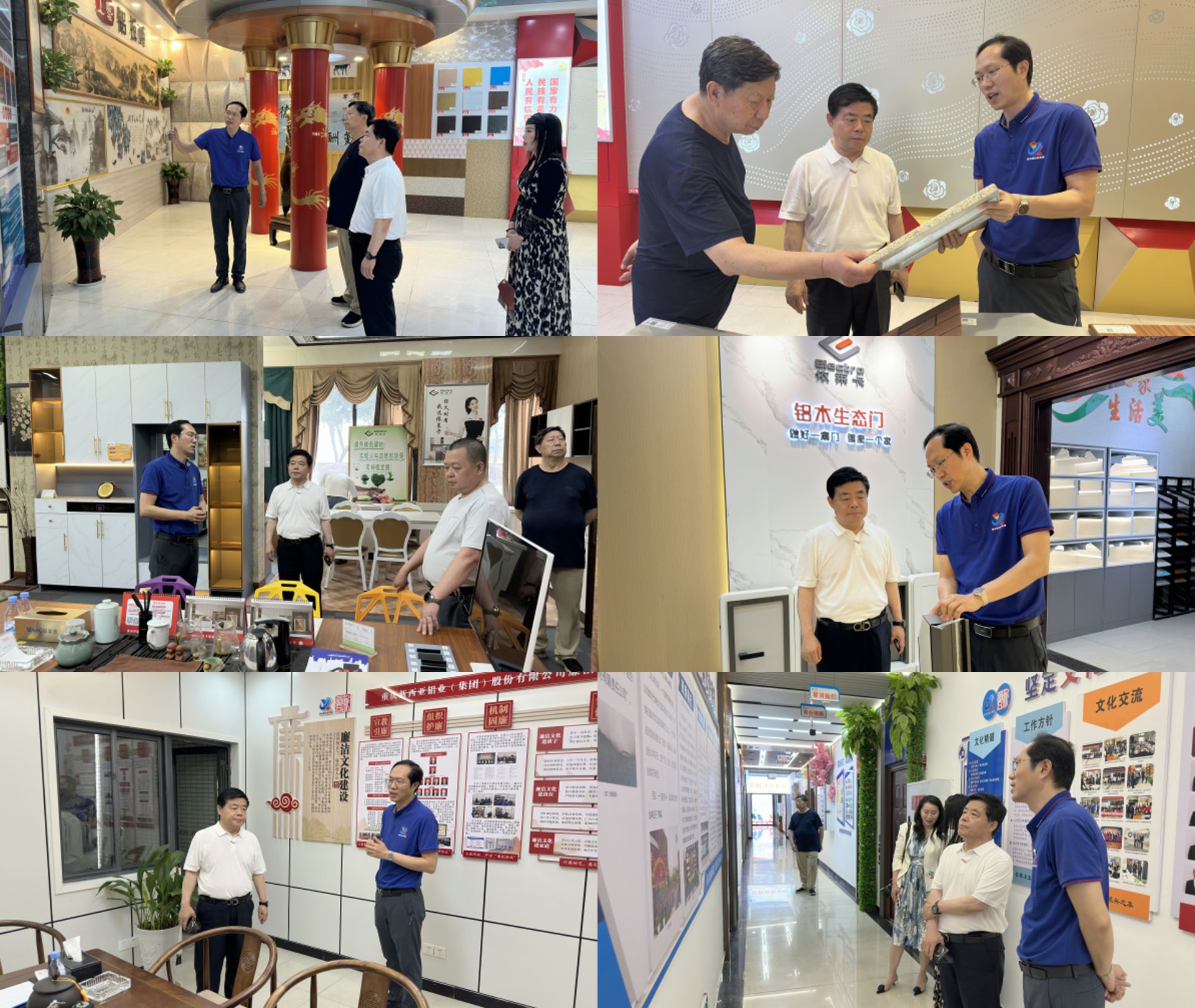 任其勇主任一行参观了新西亚的铝装饰展厅、铝家居展厅、党群活动中心及文化长廊。参观过程中,他们对新西亚的产业布局、产品特色及深厚的文化底蕴有了直观而深入的了解。