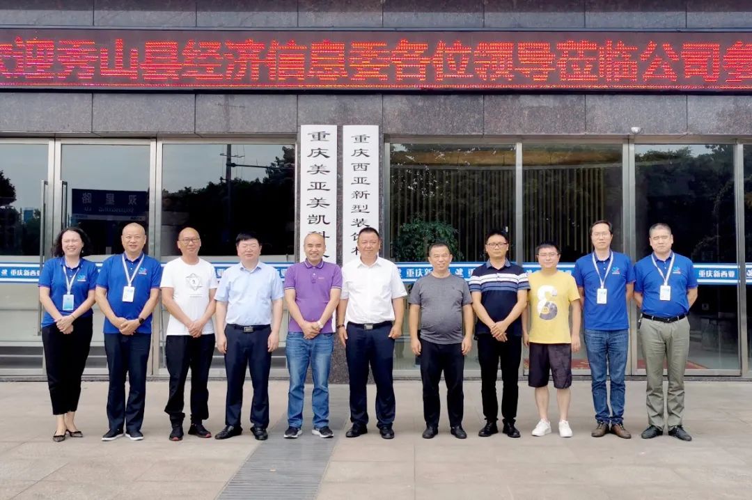 8月30日,秀山县经济信息委杨正宽主任、秀山县科技局何军局长、大数据局邓德明局长,在重庆市新材料产业联合会王敬贵秘书长的陪同下走进重庆suncitygroup太阳官方网站集团参观交流。