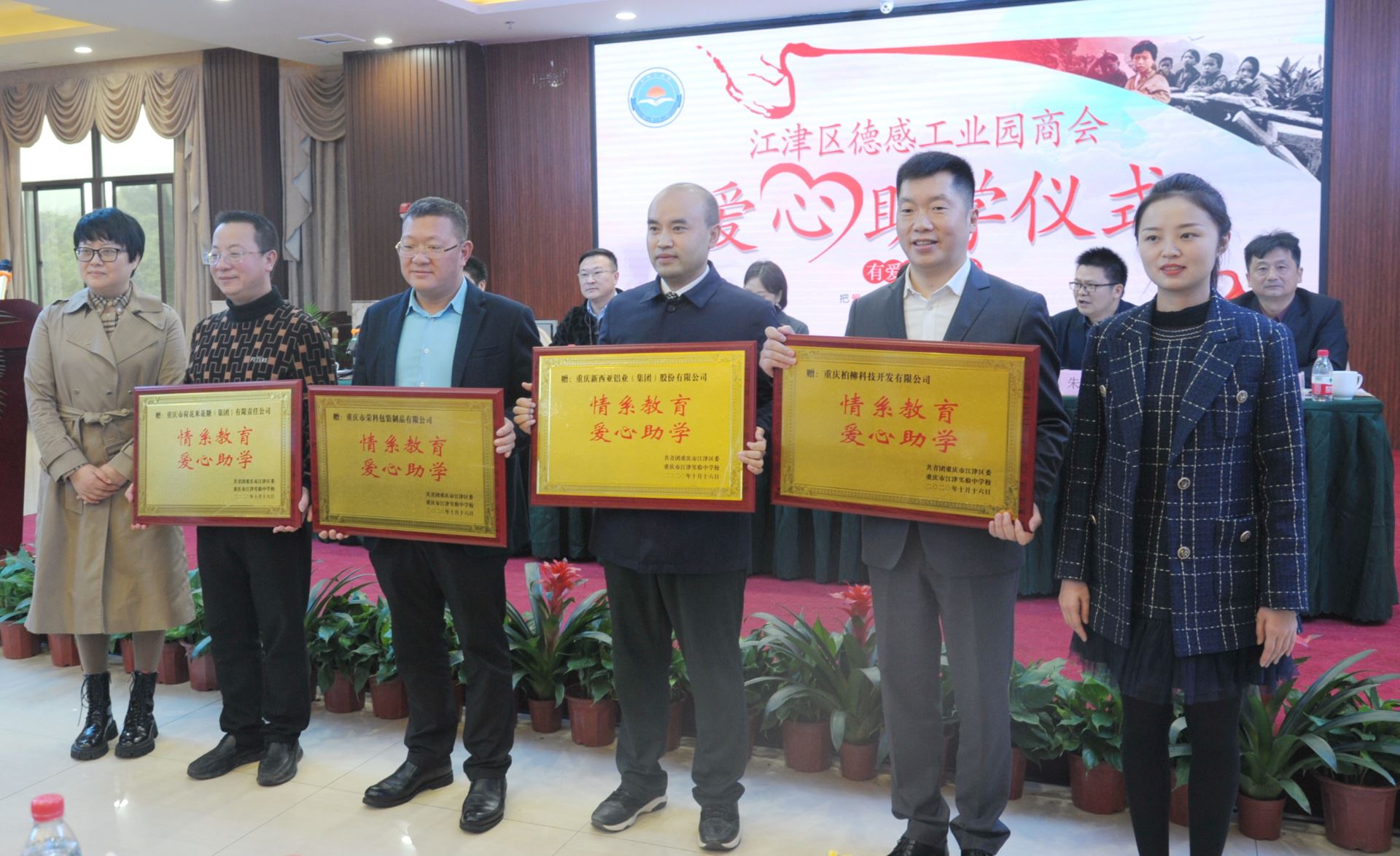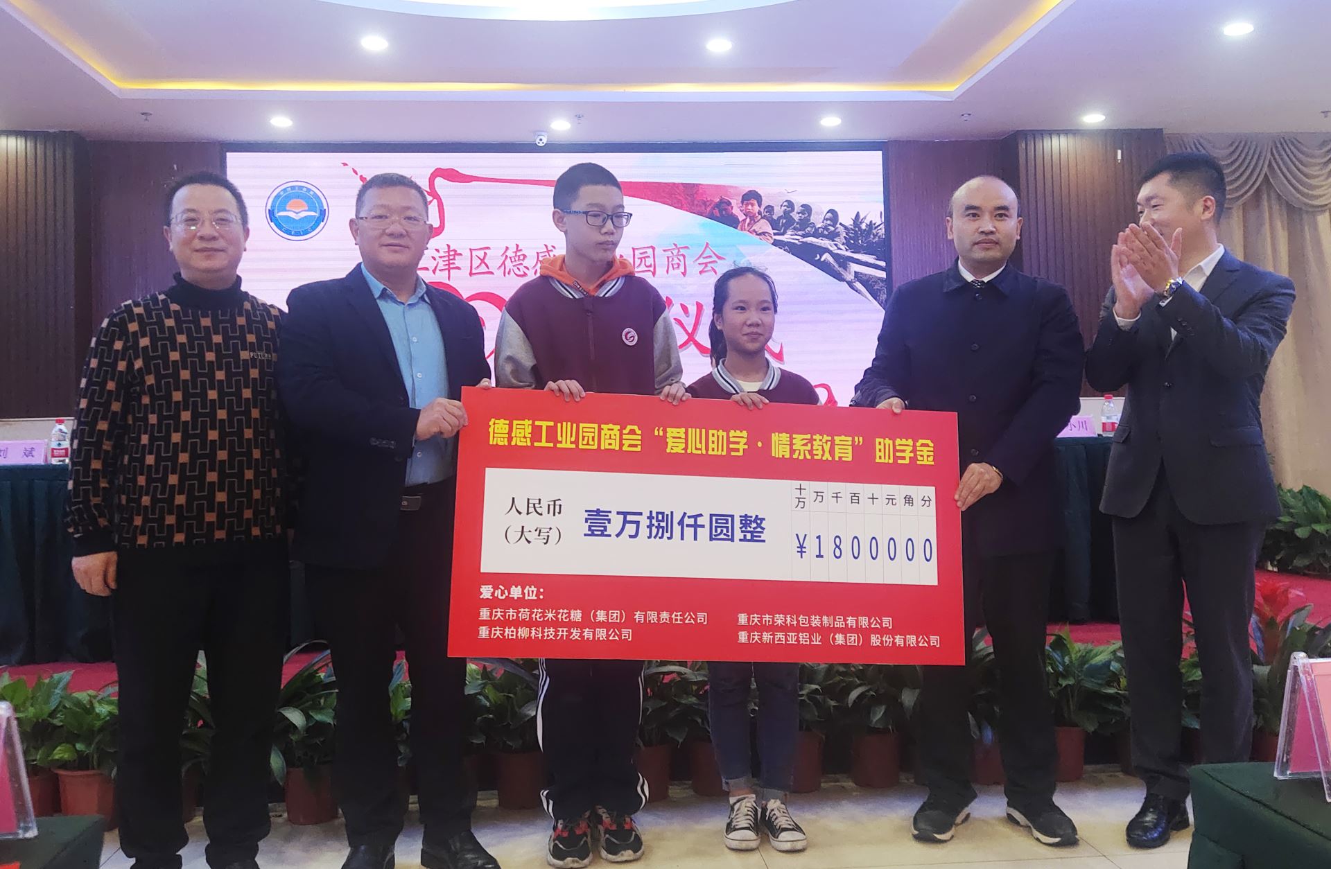 2020年10月16日,江津区德感工业园商会第三届一次会员大会在禾宴大酒店隆重举行,作为本次会议主要议程,会员企业—重庆市荷花米花糖(集团)有限公司、重庆市荣科包装制品有限公司、重庆柏柳开发有限公司、suncitygroup太阳官方网站,共同出席了“爱心助学·情系教育”活动仪式。江津区委常委、区委统战部部长杨利,江津区委常委、德感工业园发展中心党委书记、主任李祖明,德感工业园发展中心党委委员、副主任朱志明,江津区工商联(总商会)主席邹勇,江津区工商联(总商会)副主席廖代旭、江津团区委副书记陈奕池、江津区实验中学副校长柴瑛及德感商会92名会员共同见证了这一时刻。
