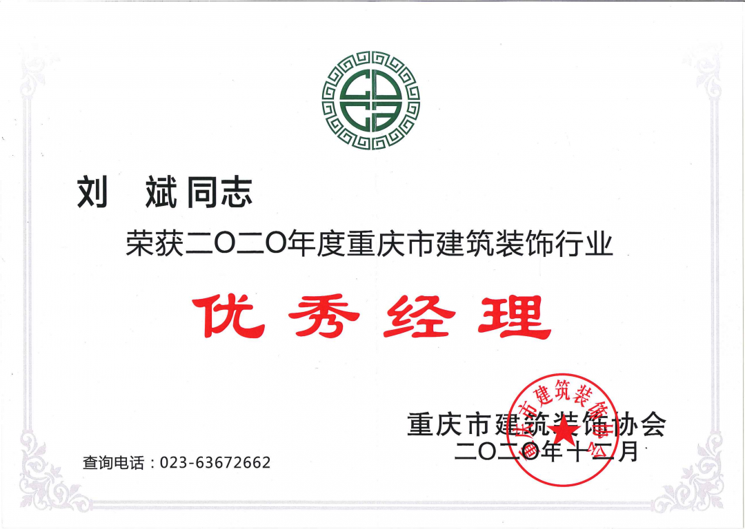 会上,对2020年度重庆市建筑装饰工程优质获奖企业、先进企业、优秀个人进行表彰。suncitygroup太阳官方网站荣获2020年度重庆市建筑装饰行业“先进企业”、总经理刘斌荣获2020年度重庆市建筑装饰企业“优秀经理”。