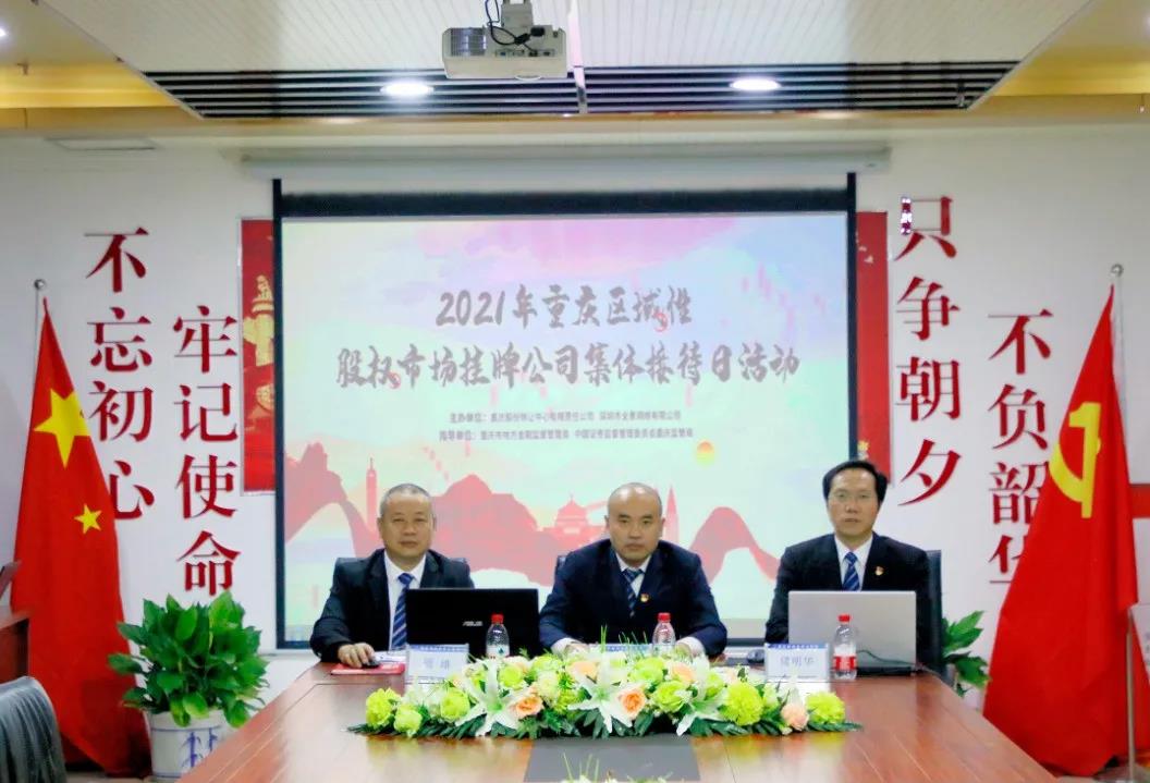 2021年重庆区域性股权市场挂牌公司集体接待日活动于2021年11月5日下午成功举行。活动由重庆市地方金融监督管理局和中国证券监督管理委员会重庆监管局指导,重庆股份转让中心有限责任公司、深圳市全景网络有限公司联合主办。应疫情防控要求,活动为线上开展,共有16家重庆区域性股权市场挂牌公司,30余名挂牌公司高管远程参加。