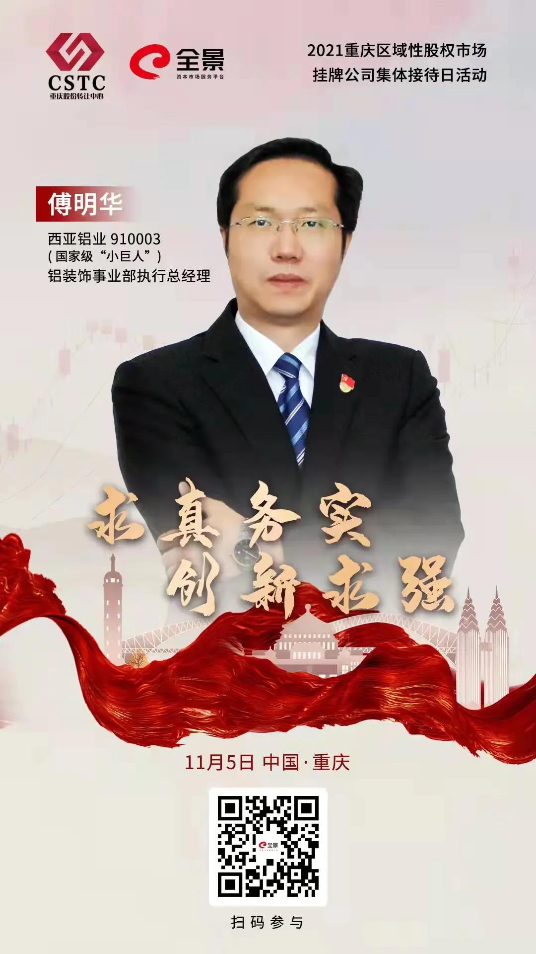 重庆suncitygroup太阳官方网站集团作为挂牌企业(股权代码910003),高度重视此次活动,集团公司董事长兼总经理刘斌,集团事业部执行总经理周雄,铝装饰事业部执行总经理傅明华全程参与。