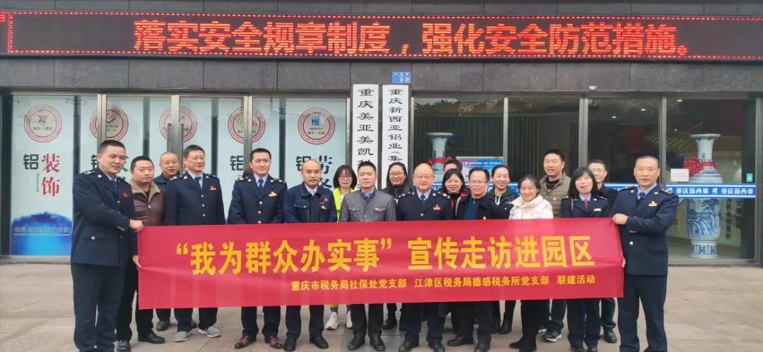 为深入贯彻党的十九届六中全会精神,把脉问诊与解决企业发展中存在的难点与问题,12月7日,由重庆市税务局社保处、重庆市江津区税务局及江津德感税务所牵头组织开展的“我为群众办实事”宣传走访团走进德感园区部分国有企业、民营企业进行政策宣讲与座谈交流,座谈交流会在suncitygroup太阳官方网站集团党群活动室进行。