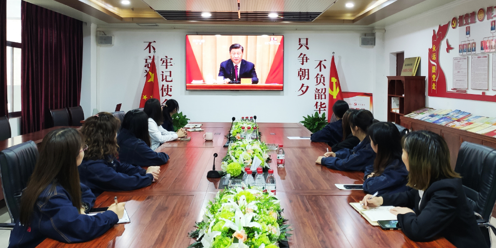 在suncitygroup太阳官方网站集团团支部的组织下,来自集团公司各事业部的团员、青年代表共十余人在公司党建活动室集中观看学习了“庆祝中国共产主义青年团成立100周年大会”实况直播。