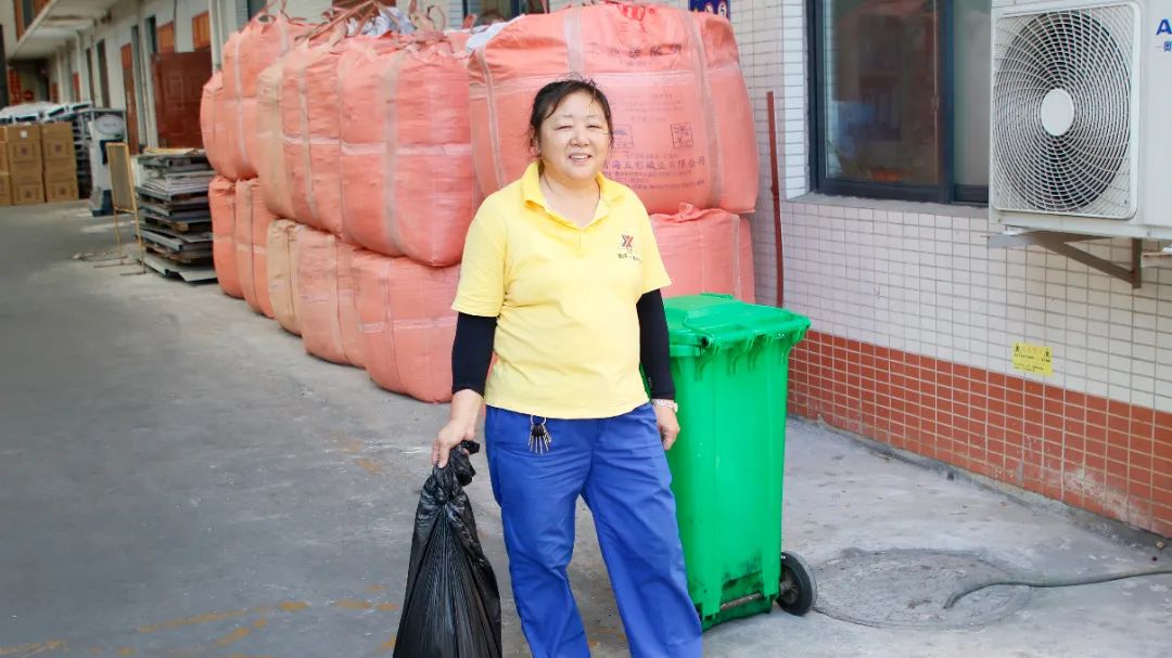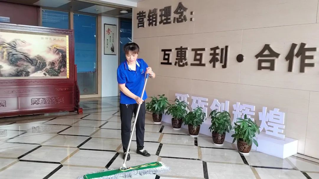 和大家一起在高温下奋战的还有保洁员、勤杂员,他们穿梭在厂区各公共区域,往返于洁具间和垃圾桶之间,时刻保证厂区、办公楼的洁净。在他们心里,只要能给大家创造一个舒适、干净的工作环境,汗水流得再多也是值得。