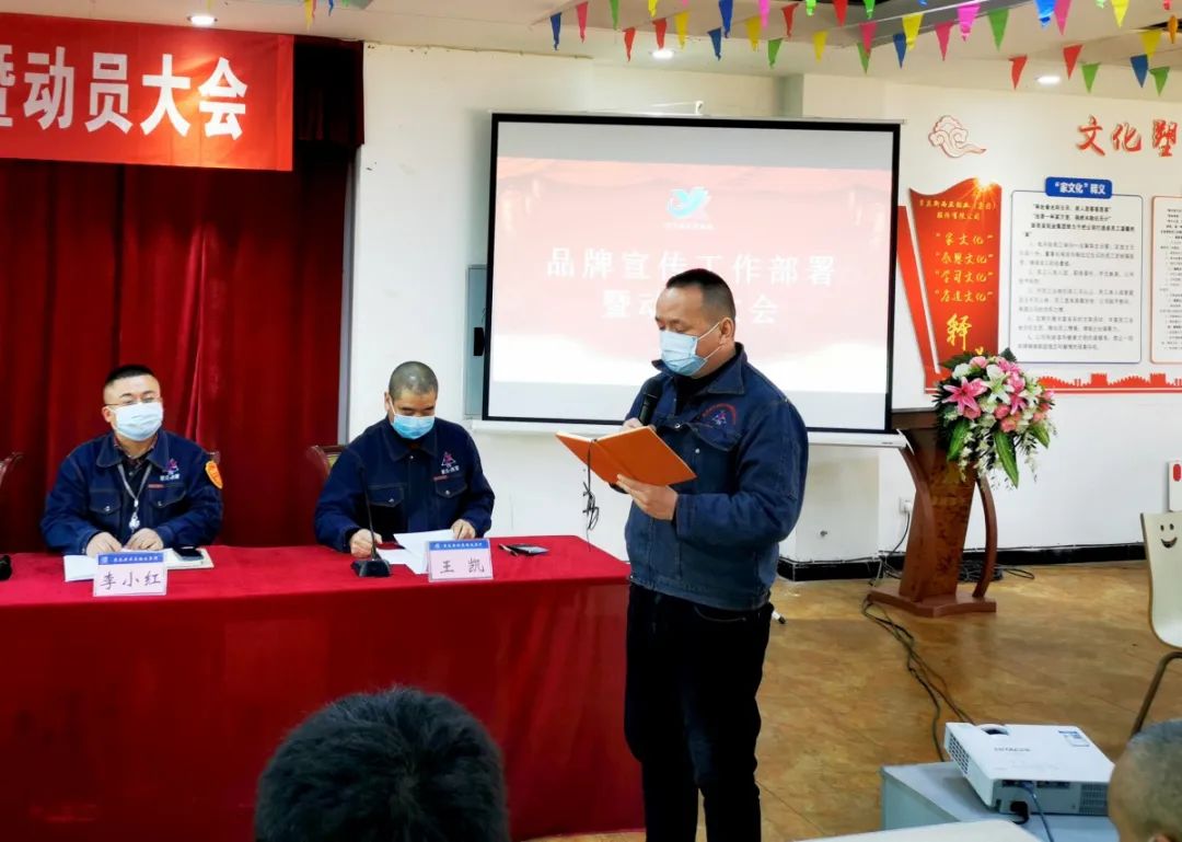 春回大地水日暖,柳条吐丝万千条。3月7日下午,公司在食堂大厅组织召开了以“精准部署、凝聚智慧、全员参与、助推品宣工作上台阶”为主题的年度品宣工作部署暨动员大会,公司经营班子成员、21名特约品牌宣传员及主管级以上人员共计57人参加了本次会议。会议由公司品宣领导小组执行组长王凯主持。