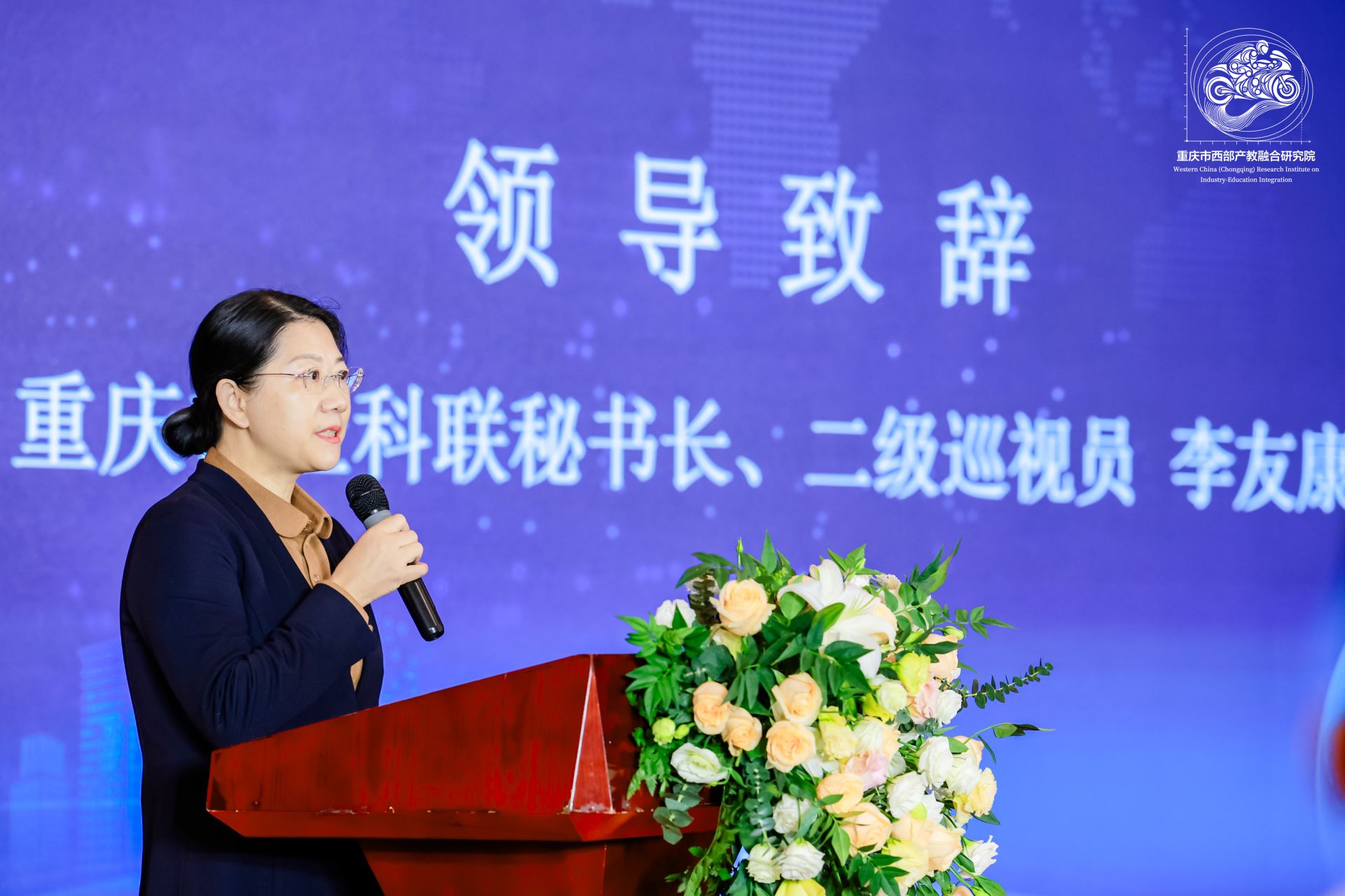 李友康秘书长表示,作为研究院的监督指导单位,见证了研究院的成长与发展。研究院虽然成立时间较短,但自筹备以来,勇于创新,敢于探索,在实践中不断总结经验,打造了诸多产教融合标志性成果,如今研究院成立亦是阶段性成果的展示。她强调全市社科界对研究院有更高政治与工作要求,期待研究院未来能把握职业教育改革发展的主题主线,顺应职普融通、产教融合的时代潮流,走教育发展、科技创新、人才培养之路,结合实际,做好贯彻落实,严格执行以下四个任务要求:一是提高政治站位,二是要强化理论武装,三是要敢于担当作为,四是要推动融合结合。为全市社科界打造“渝字号”社科品牌作出新突破,在推动哲学社会科学高质量发展上有新作为。