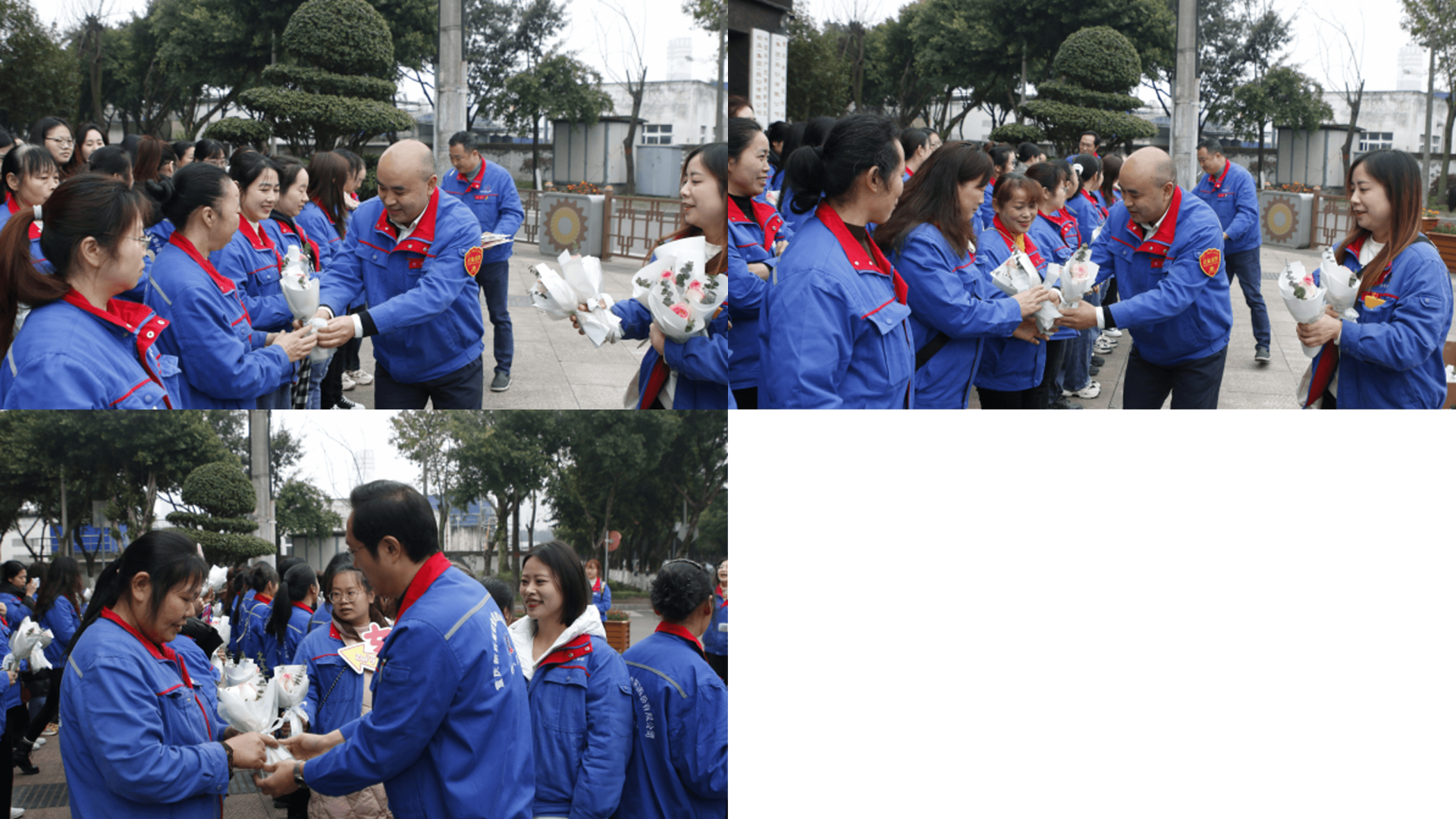 刘总的祝福话音刚落,一场温馨的赠花仪式随即展开。鲜花象征着美好与希望,正如女职工在各自岗位上所展现的美丽与力量。公司领导依次向每位职工递上花束,伴随着温暖的微笑和诚挚的祝福:“感谢你们的辛勤付出,愿这束花能带给你们节日的喜悦,愿你们的生活如这花朵般绚烂多彩。”