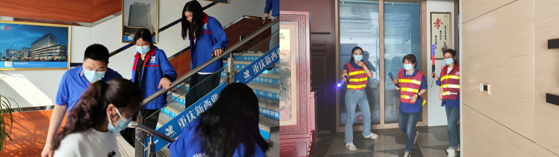 理论培训结束后,实战演练正式拉开帷幕。首先进行的是火灾疏散逃生演练。随着一阵急促、刺耳的火灾报警声响起,参演人员迅速反应,在疏散员的引导下手捂口鼻、弯腰低姿,沿着预定的安全通道,快步向楼下安全点撤离。整个过程紧张有序,仅用时1分30秒,高度还原了真实的火灾逃生场景,有效检验了员工的应急反应能力和自救互救意识。