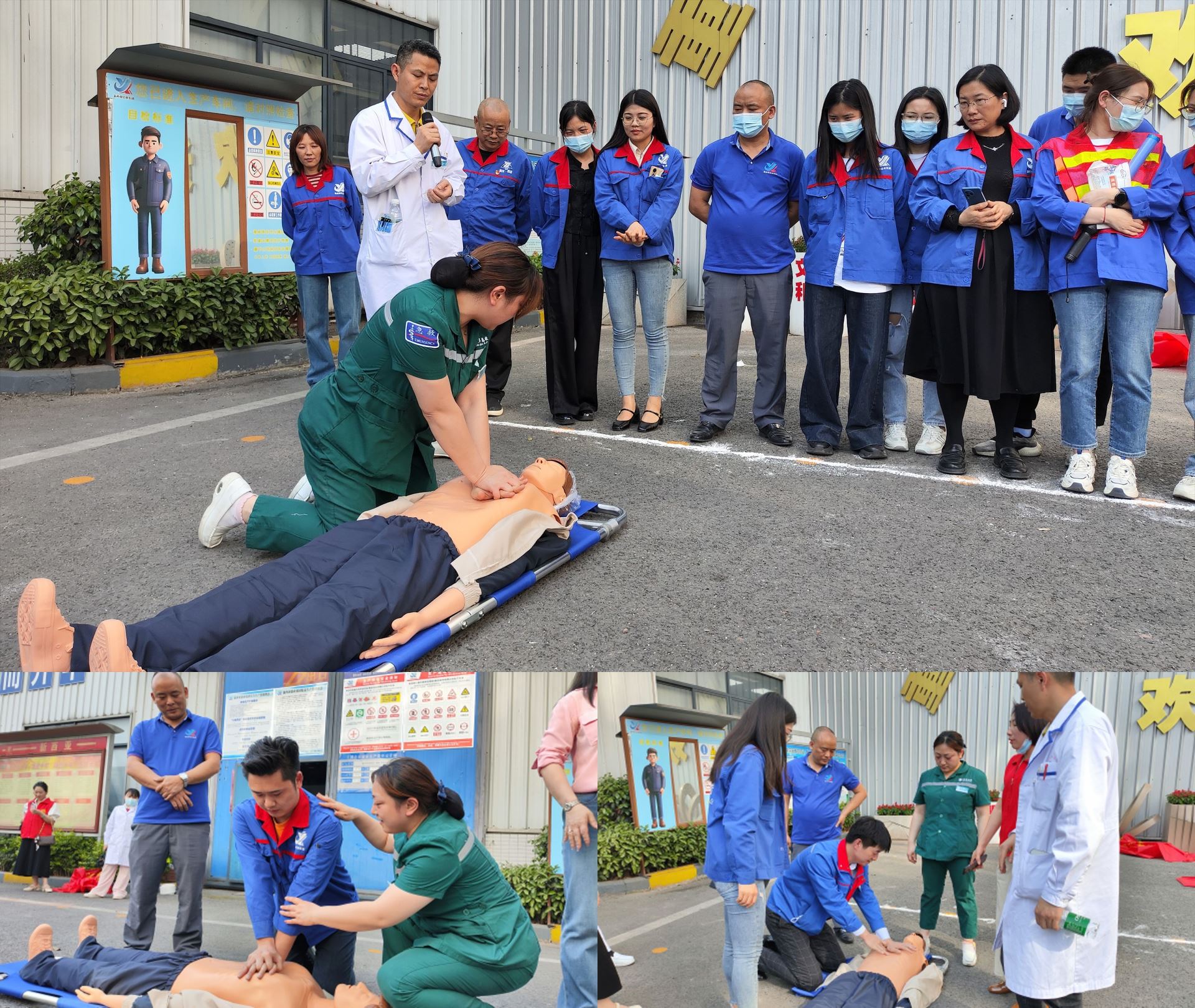 抵达安全区后,双福佳华医院急救科护士长龙颜为大家带来了心肺复苏急救培训。她详细讲解了心肺复苏的操作步骤和要点,包括判断意识、胸外按压、人工呼吸等,并利用模拟人进行了现场演示。为加深员工的理解和掌握,龙护士长还邀请了多名员工进行现场实践操作,并逐一进行指导和纠正,确保每位员工都能正确掌握心肺复苏这一重要的急救技能。通过此次互动演练,员工们不仅掌握了心肺复苏这一“救命技”,更增强了应对突发事件的信心和能力。