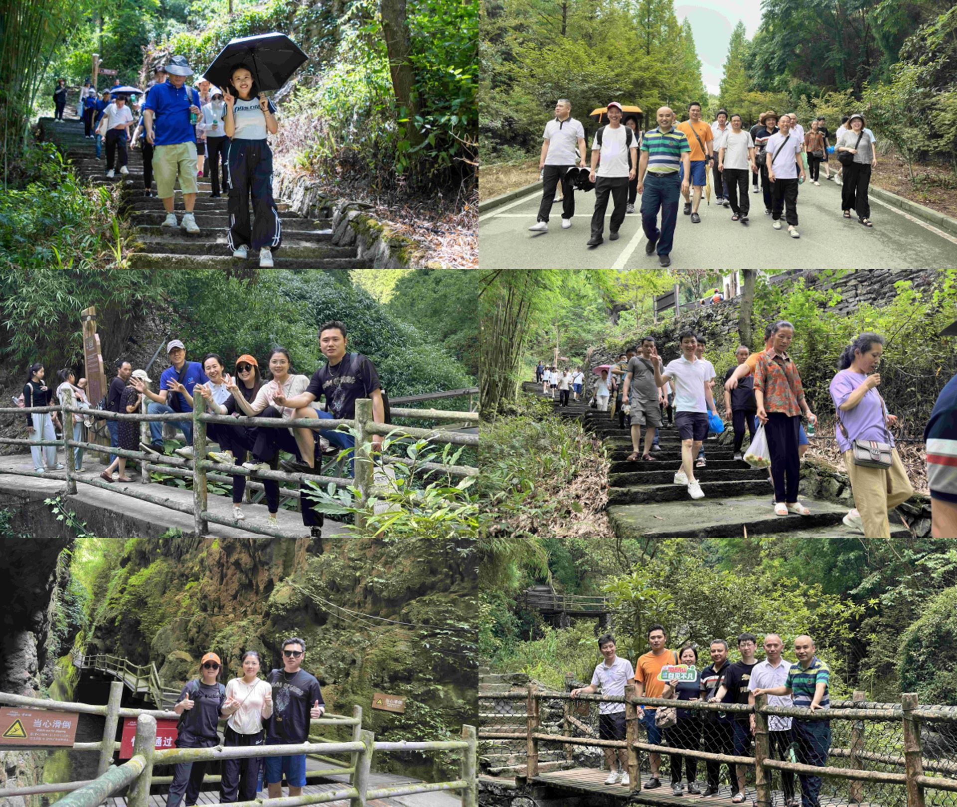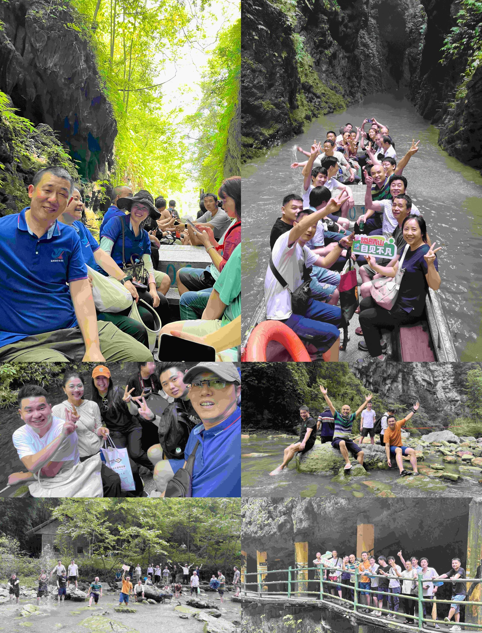 大家三三两两,或凝视奇石怪树,发出惊叹;或席地而坐,分享工作趣事与生活点滴,欢声笑语在山谷间回荡。更有性子活泼的伙伴们,干脆脱了鞋袜,踩入清凉溪流,玩水嬉戏,追逐着小虾小蟹,溅起的水花与爽朗笑声让山谷灵动起来。一路上,伙伴们相互搀扶、耐心等待,年轻的员工主动接过背包、分享零食,自然的关切与体贴让队伍充满暖意。在这看似寻常的互助瞬间和童趣的嬉戏之中,团队的凝聚力与温情,正悄然生长,温暖了整个旅程的每一步。