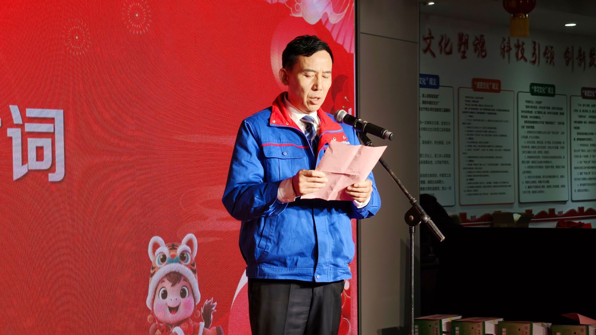 随后,公司监事主席王世富发表新春致辞。他深情回望过去一年的辉煌成就,向全体员工的辛勤付出致以诚挚谢意,并号召大家在新的一年里振奋精神,接续奋斗。