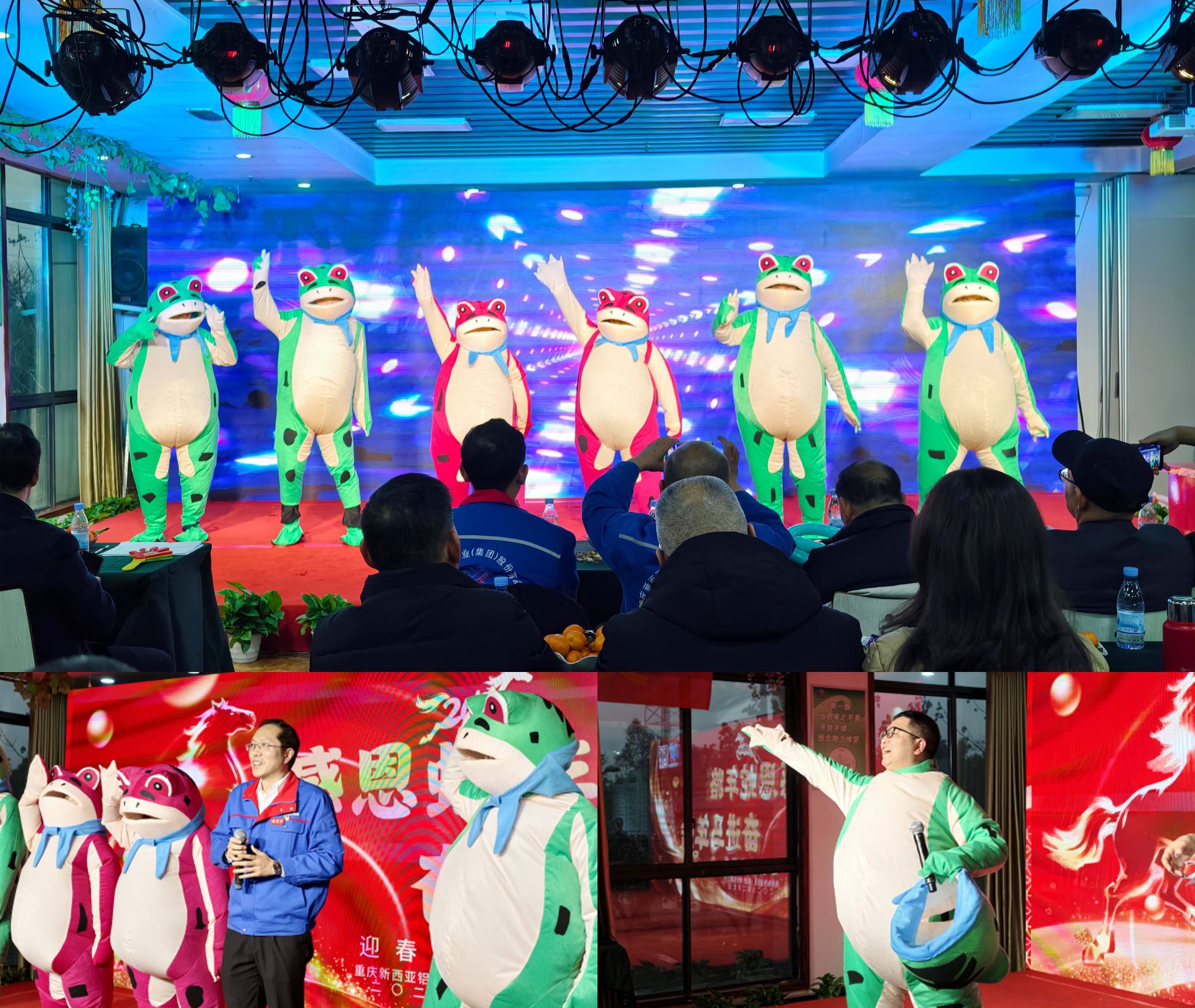 职能中心曹健、胡苗苗等人的《蛙舞串烧》诙谐幽默,引爆全场欢乐。