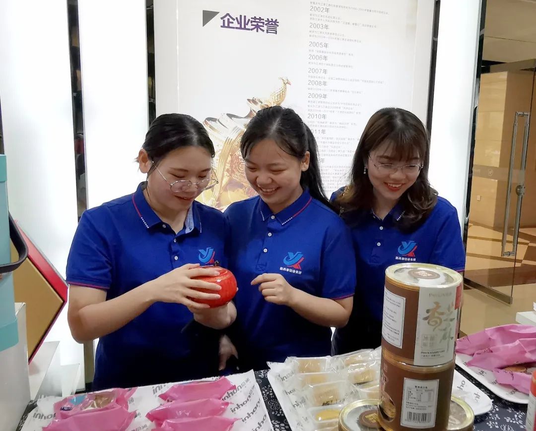 总经理助理、铝家居事业部总经理王凯带领大家走进隐涵食品基地,参观了隐涵食品公司产品展厅,直观的了解公司的企业文化,被隐涵食品公司琳琅满目的美食产品所吸引,大家不由赞叹糕点美食的精致化和多样化。