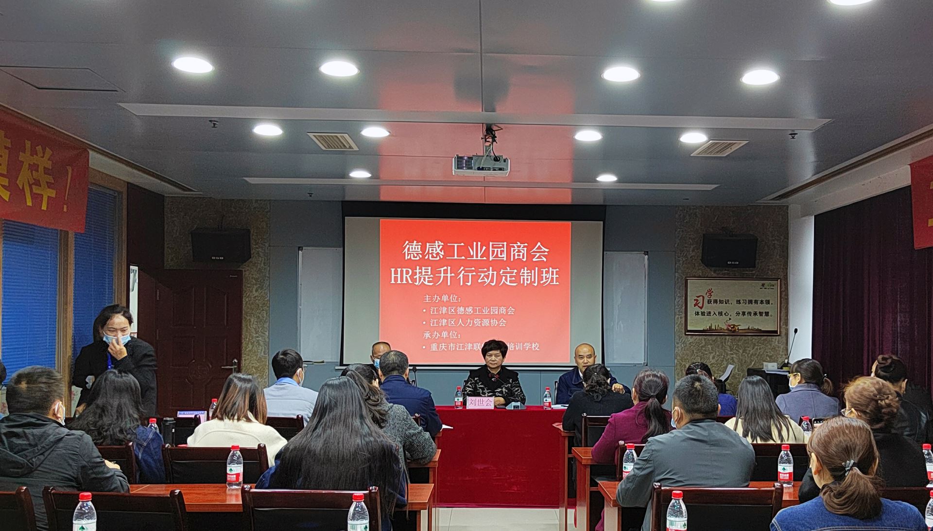 2021年10月29日,由江津区人力资源协会和德感园区商会共同举办,江津联畅职业培训学校承办的德园商会《HR能力提升培训班》在suncitygroup太阳官方网站三楼商学院教室举行。江津区德园商会会长、suncitygroup太阳官方网站集团董事长兼总经理刘斌,江津区人力资源协会会长、多赢创嘉文化传播有限公司董事长刘世会,江津联畅职业培训学校校长曾维民,江津区人才和就业服务局工作人员以及培训班学员近40人参加仪式。